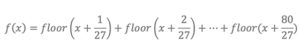 The function f(x) is quite simple to implement. All common programming environments have a floating point data type and a mathematical library with floor function. Adding the 80 terms of the sum can be done in a simple loop.